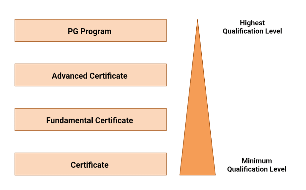 PG Program requires the study of fundamental Certificate and Advanced certificates, case studies and final year project: