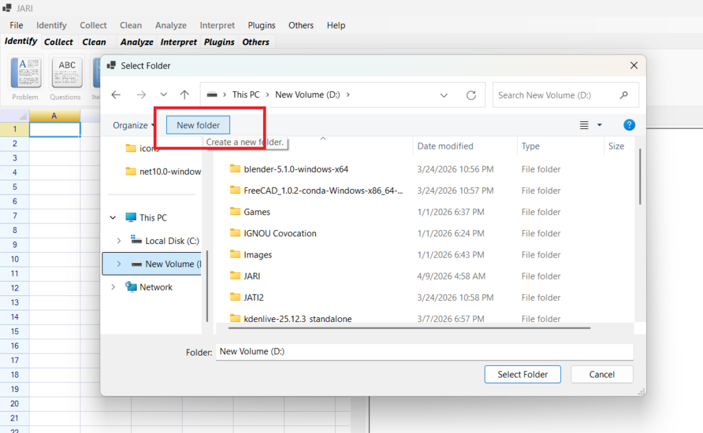 Click Create New Folder. It is preferred to save the project in D:/ also because of Windows security.