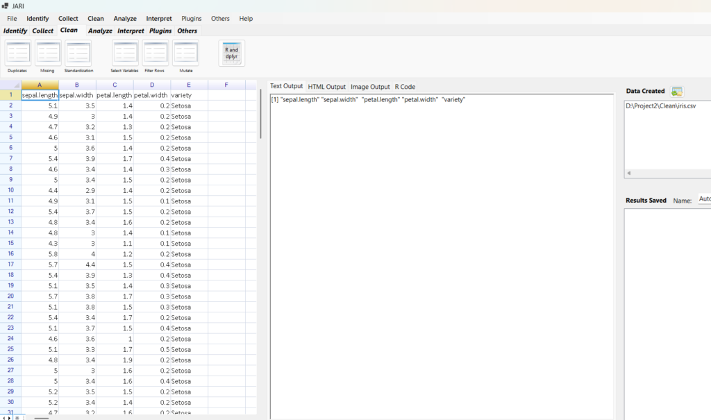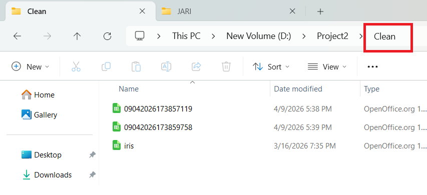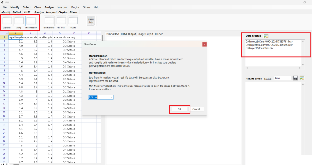 The Data Created on the right side shows the data created from removing missing values, removing duplicates, and the data are in the clean folder. Click on the data to change data.