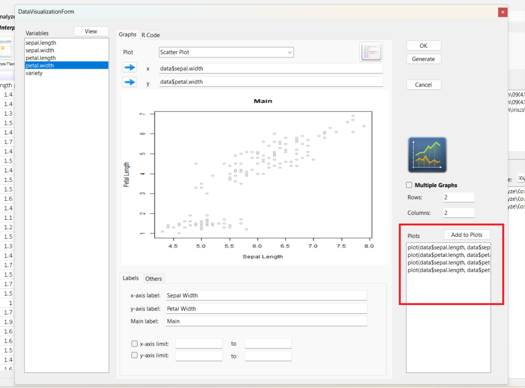 We only select three variables because if we select four variables, there will be errors because of stargazer library. We can however, click on the R Code to edit the R codes and error.