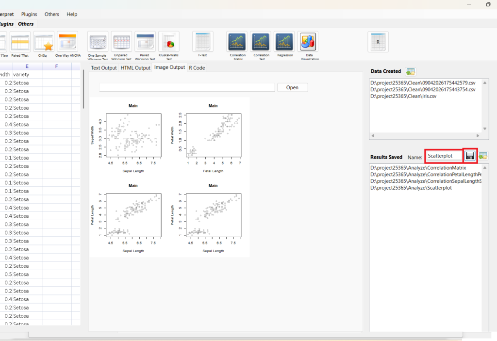 Save results. Name: CorrelationSepalLengthSepalWidth.