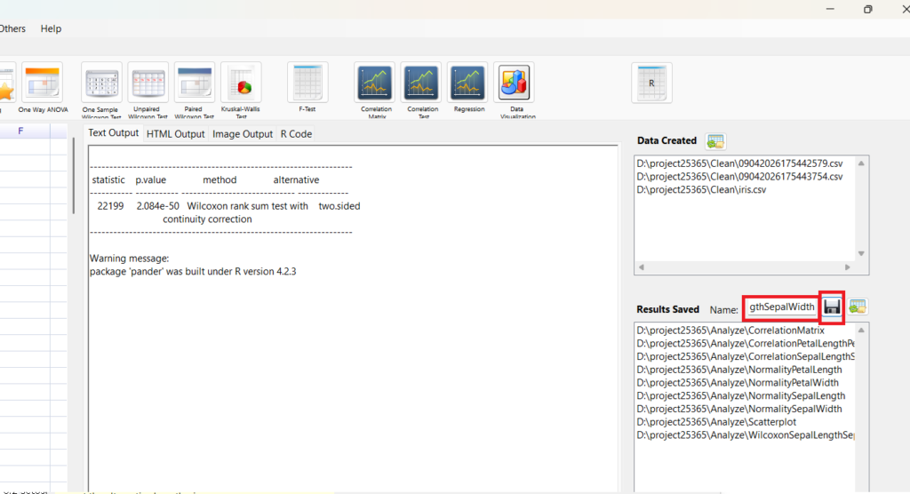 Save Results. Name WilcoxonSepalLengthSepalWidth Save
