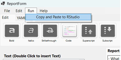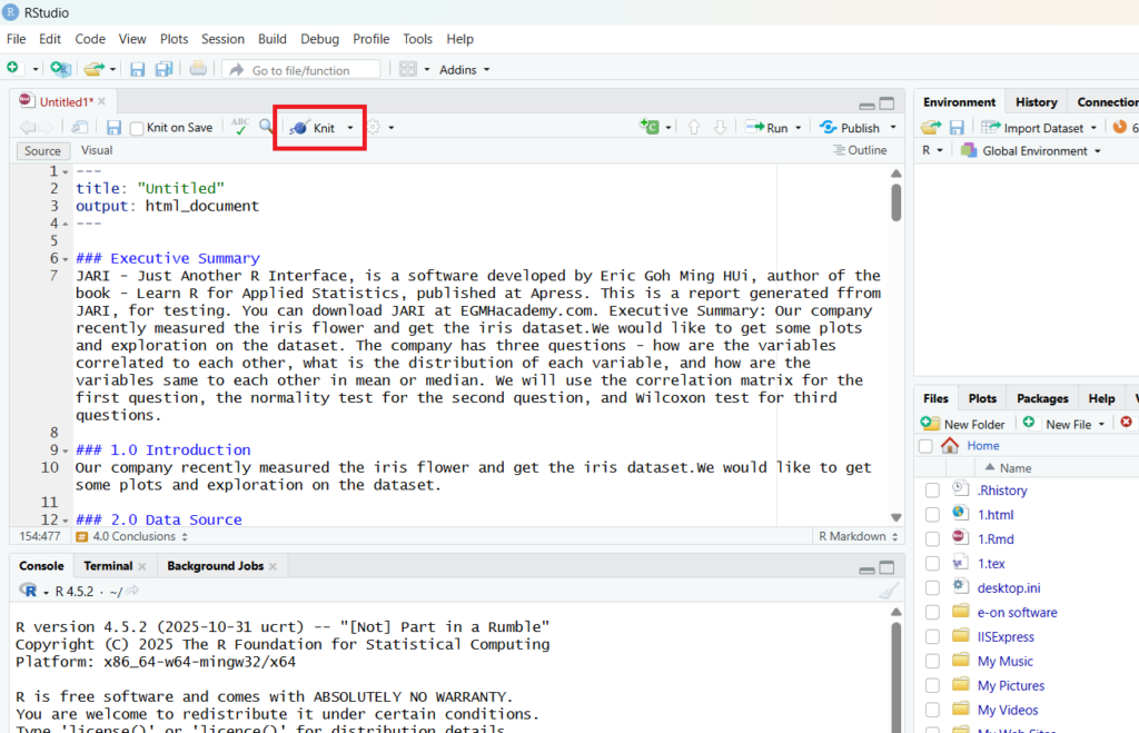 I have problem to install knitr for R Portable 4.2. Hence, I cannot run the rmarkdown. For now, click on Run > Copy and Paste to RStudio